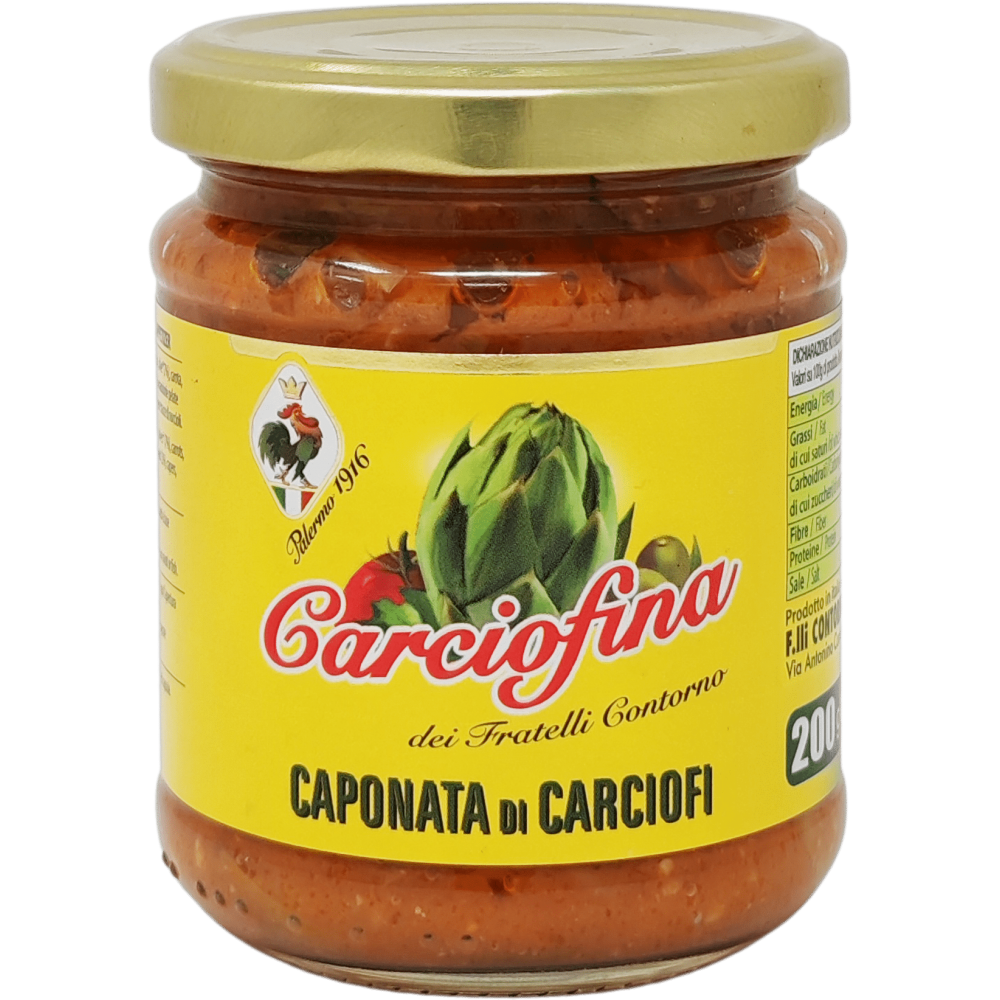 è un antipasto a base di carciofi, olive e mandorle. Fonte ispiratrice di questa ricetta è la famosa caponata di melanzane che elaborata da esperti cuochi siciliani ne fanno un antipasto altrettanto buono e sfizioso.