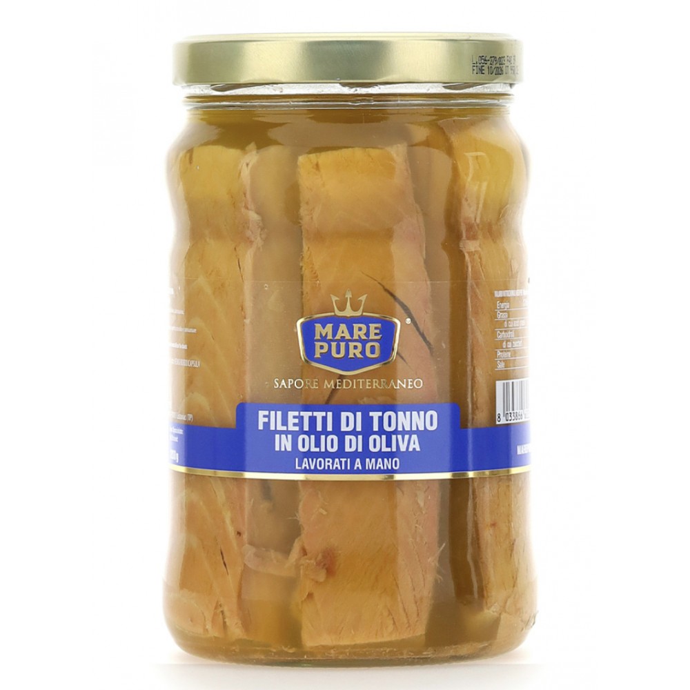 Filetti di Tonno (Thunnus albacares), olio d’oliva, sale marino